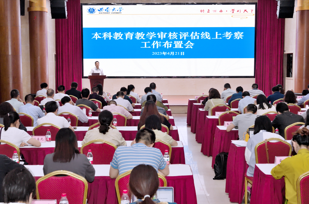 为扎实推进本科教育教学审核评估工作,高质量完成线上考察任务,4月21日上午,学校在东方红会议厅组织召开本科教育教学审核评估线上考察工作布置会。副校长陈时见出席会议,各学院(部)分管教学工作领导、教学办主任、评估工作联络员参加了会议。会议由教务处处长吴能表主持。