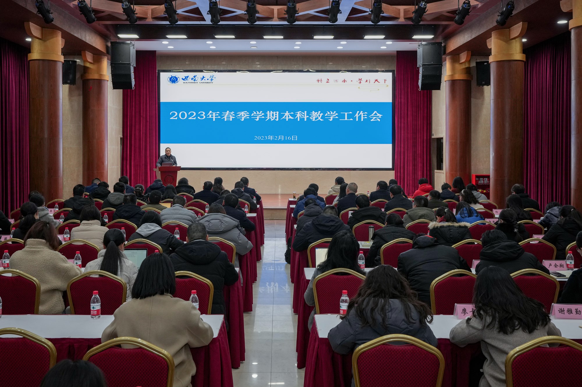 为深入贯彻党的二十大精神,落实立德树人根本任务,持续推动教育事业创新发展,2月16日上午,学校召开2023年春季学期本科教学工作会,副校长陈时见出席会议并讲话,教务处副处长易鹏主持会议。