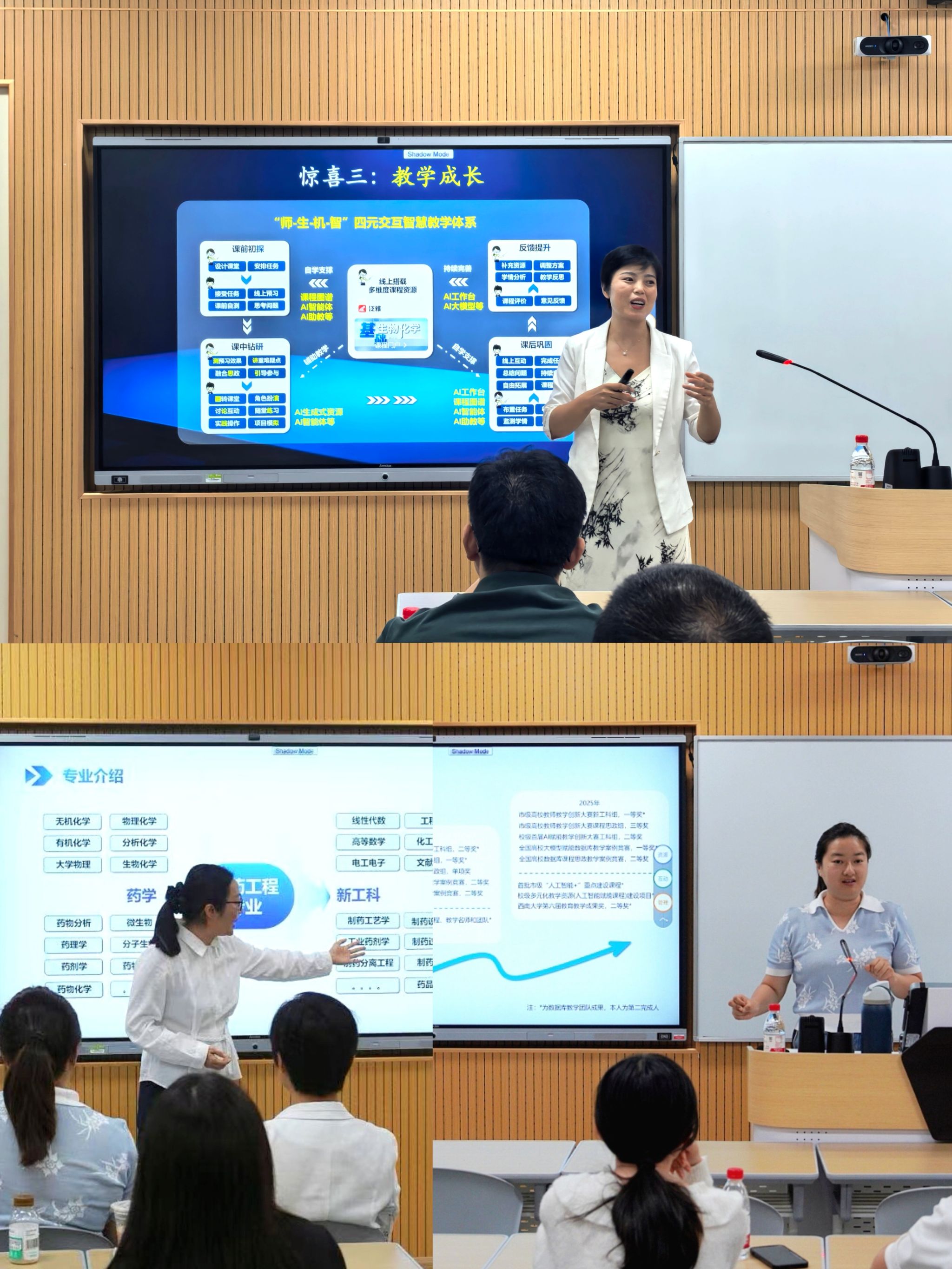 下午沙龙环节,文科组与理科组同步开启“实战经验分享”。文科组中,周莉结合高性能服装与智能装备领域的跨学科研究,分享科研反哺教学的具体路径,用鲜活案例诠释教研相长;李丹聚焦竞争法与民法教学创新,介绍法学核心课程线上资源搭建、AI 赋能教学的方法,并分享“高效互动、精准反馈”的实用技巧。理科组里,梅家琴作为学校首批数字化骨干教师,结合“全信息化混合式教学”案例,讲述植物资源学课程线上教学的探索历程,拆解信息化破解教学难点的关键;胡莎依托信息检索、知识图谱的科研积累,交流数据库专业课程建设思路,探讨“科研新思维融入课堂”的路径;郭婷则针对制药专业教学痛点,分享混合式教学提升学生专业素养与实践能力的经验。