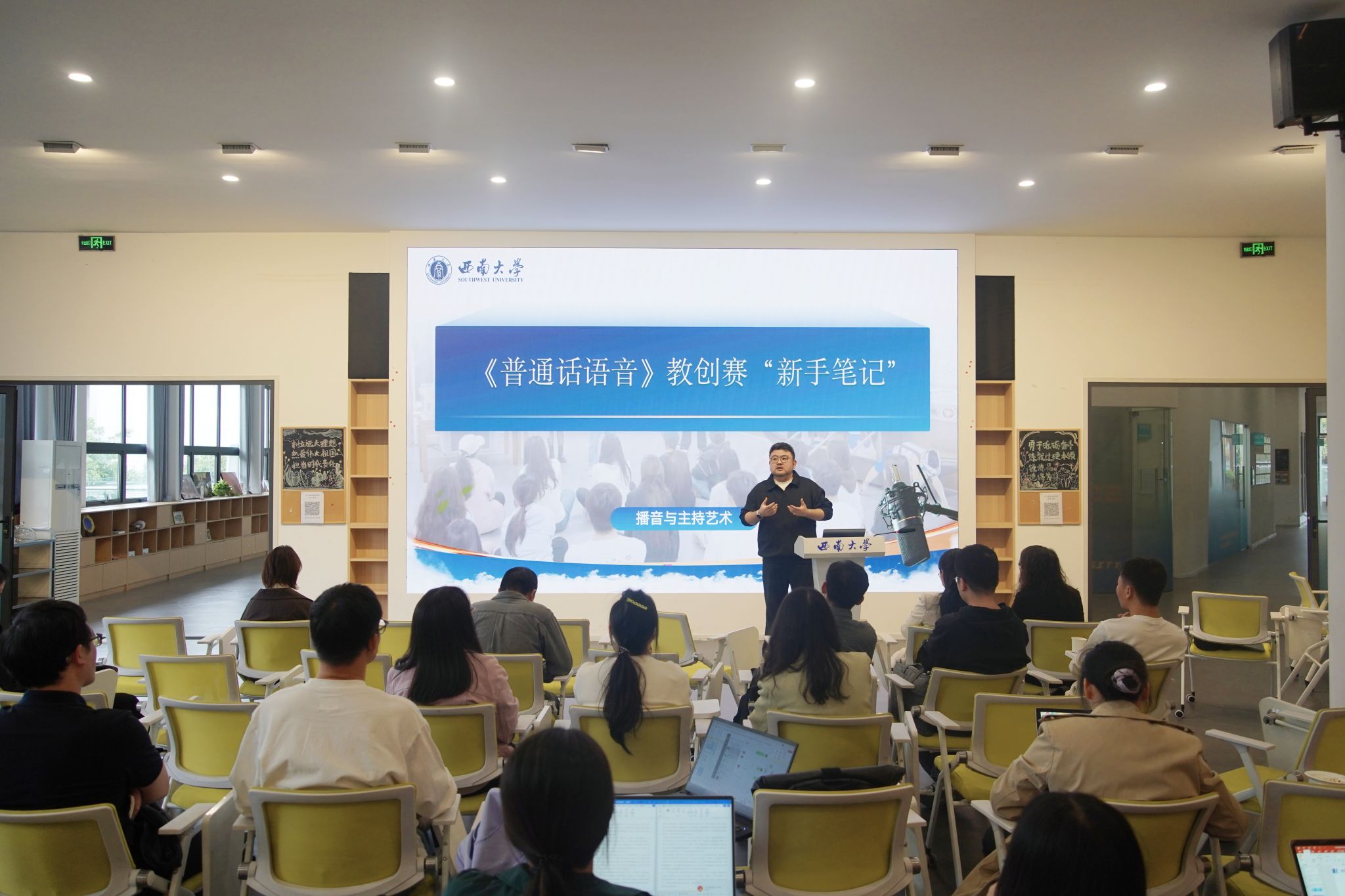 侯宗平则结合自己参加全国高校教师教学创新大赛的经历,从教学创新成果报告撰写技巧、课堂实录拍摄要点、现场汇报设计三个核心环节,为青年教师提供“手把手”的教学比赛指导。他特别强调,教学改革的核心在于扎根教育教学中的“真问题”,青年教师在设计教学创新方案时,应构建“教学冲突发现—解决方案探索—实践效果验证”的完整逻辑链,通过真实的教学场景展现自身应对学情变化的教育智慧;同时,在成果呈现与现场汇报中,要注重用“教育故事”传递教学温度,让评审专家与听众感受到教学创新背后的育人初心。分享过程中,侯宗平还现场演示了知识库搭建、超星学习通AI新功能在普通话语音教学中的实际应用,引导青年教师进一步开拓创新思维,让技术真正成为提升教学质量、赋能学生成长的有力工具。