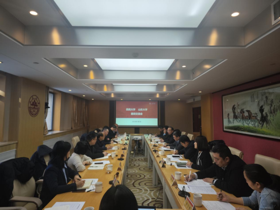 1月3日下午,周光明一行在山东师范大学开展考察交流,山东师范大学党委常委、副校长李娜及教务处、团委、校长办公室、研究生院、学生工作部、教育学部相关负责同志出席活动。周光明一行参观了齐鲁文化研究院,并与山东师范大学相关人才培养单位开展座谈交流,双方围绕人才培养的改革创新、专业调整优化、教育硕士的实习实践、“一站式”学生社区建设等方面开展了深入探讨。