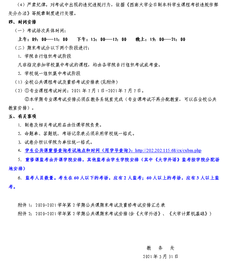 关于2020-2021学年度第2学期期末课程考试(含重修)安排的通知