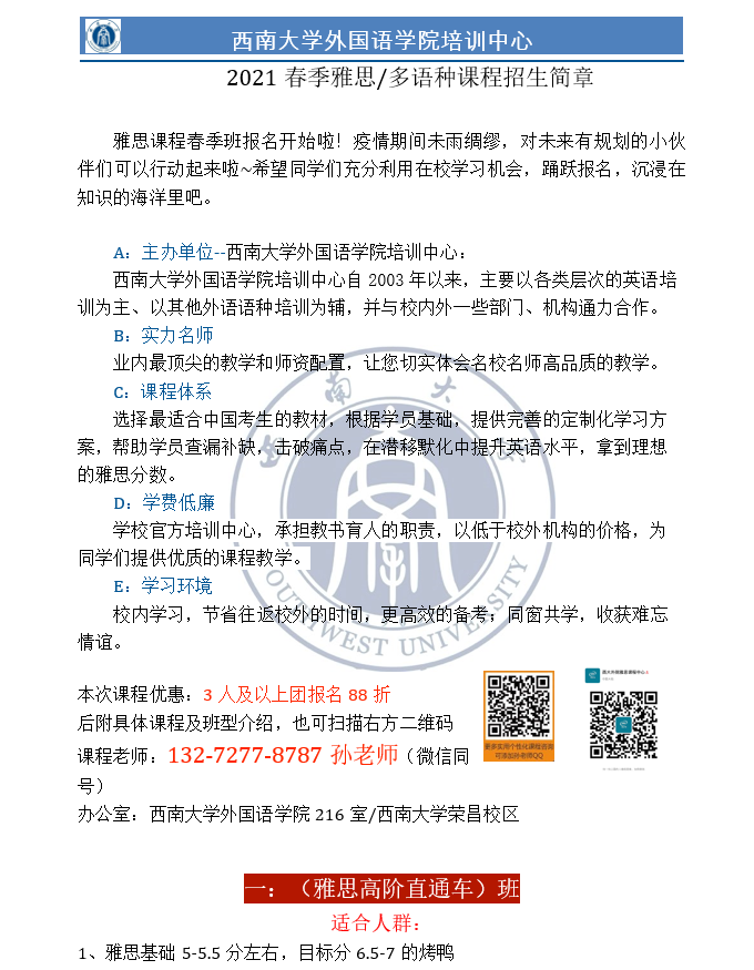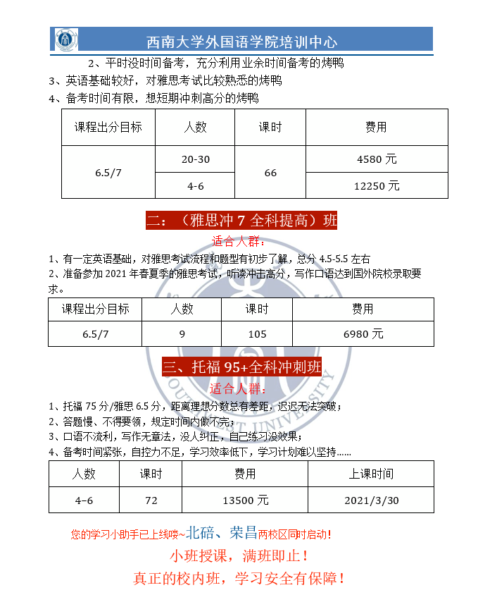 bw必威西汉姆联官网外国语学院培训中心2021春季雅思/多语种课程招生简章