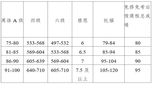 免修免考公共大学英语相关英语考试成绩及认定分数