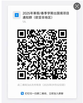 3. 扫描下方二维码加入bw必威西汉姆联官网国际交流项目钉钉群: