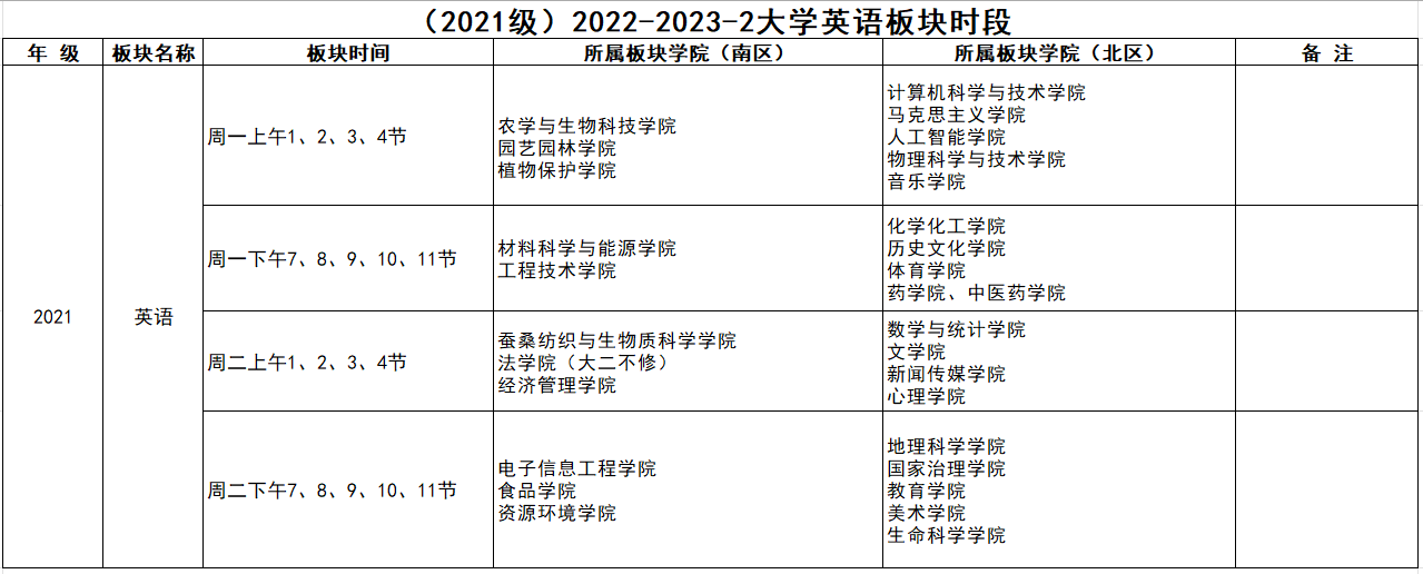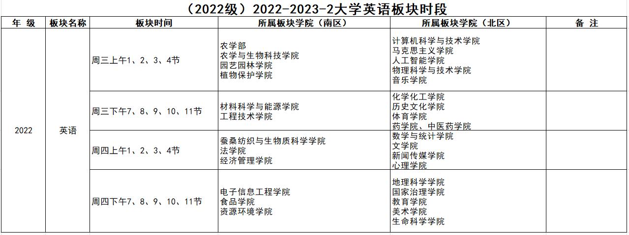 5.板块时间及学院对应校区情况如下图所示: