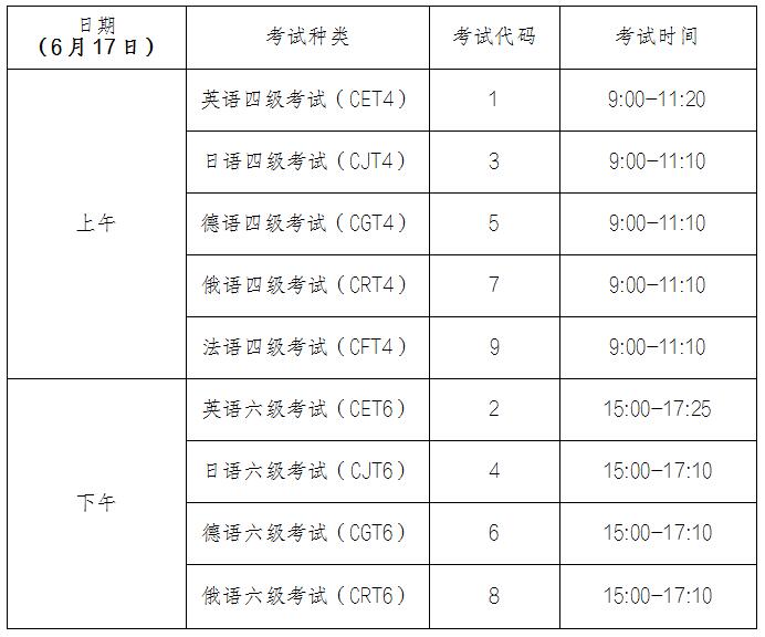 英语四级口语考试(CET-SET4)考试时间为5月20日(F231次),英语六级口语考试(CET-SET6)考试时间为5月21日(S232次),考试时间如下: