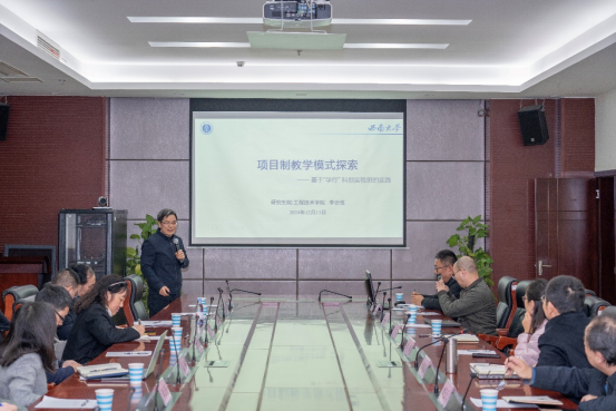 李云伍教授以“学行” 科创实验班为例,介绍了学校在项目制教学模式上的探索。李教授在报告中介绍了欧林工学院、麻省理工等世界知名大学在项目制教学中的探索和实践,也分享了我校“学行” 科创实验班的建设经验和建设成效,为未来新农科专业的人才培养模式改革和创新提供了重要的借鉴和参考。