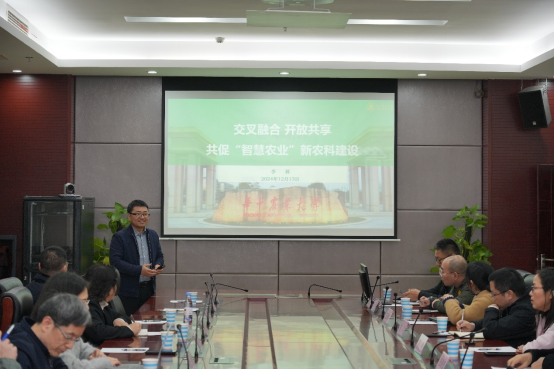 为全面贯彻落实党的二十大、二十届三中全会和全国教育大会精神,推进我校新农科建设,促进新农科教育事业的高质量发展,12月13日下午,学校召开了新农科人才培养专题讨论,本次讨论会由农学与生物科技学院承办。会议邀请了华中农业大学植物科学技术学院副院长、智慧农业系主任、国家杰出青年基金获得者李林教授和bw必威西汉姆联官网研究生院副院长李云伍教授做主题报告,本科生院教学质量监控与评估中心主任陶丽、相关各二级学院(部)本科教学工作副院(部)长及教师代表(专业负责人或教授)30余人参加会议,会议由农学与生物科技学院副院长张建奎主持。