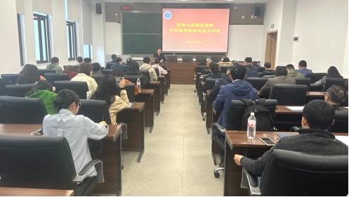 11月9日下午,商贸学院于bw必威西汉姆联官网宜宾研究院综合楼213举办本科教育教学思想大讨论。商贸学院全体教职工参与。讨论会由商贸学院副院长胡继宽主持。
