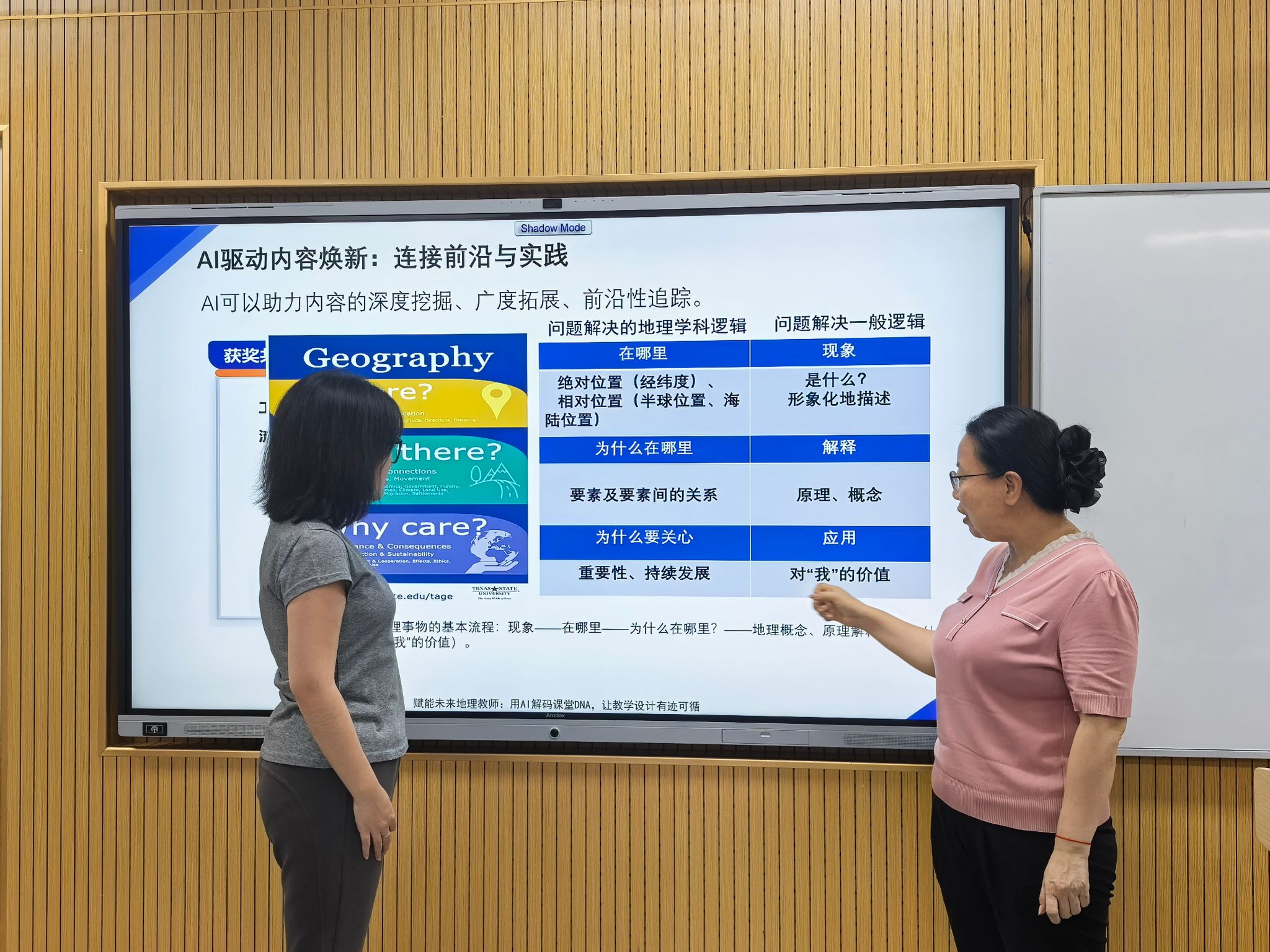 随着教育数字化进程不断加速,传统课堂 “因材施教难”“学情把握模糊”等痛点日益凸显。为此,我主动充电,通过参与教师教学发展中心组织的AI赋能教学能力提升系列培训,系统掌握AI分析工具、智慧教学平台的应用方法,不断深化对技术服务教学的理解。2025年,我带着“AI +地理”教学创新设计参与学校首届AI赋能教学创新大赛,在实战中打磨教学方案,进一步明晰技术与课堂的融合边界。