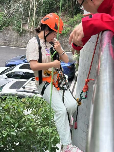 课程实操中,绳索技术训练最具挑战性,起初学生面对高空下降会感到紧张和害怕,于是我先讲解绳索承重原理与保护机制,再示范标准动作,最后一对一指导调整姿势,当看到他们最后自信地完成动作并露出胜利的微笑时,我明白这门课不仅传授了技能,更培养了孩子们直面困难的勇气。