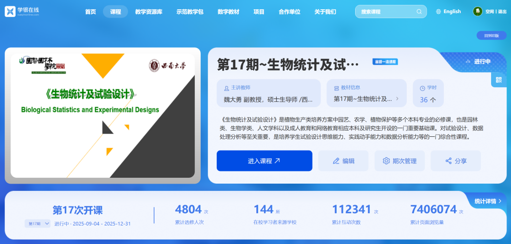 八年深耕间,课程迭代至17期,4800余名学生在此汲取知识,云端点击量累计超740万次,我愈发坚信:每一次对教学细节的坚持,都将汇聚成推动课堂变革的力量;每一次课堂焕新的尝试,都会成为学生成长路上温暖的印记。