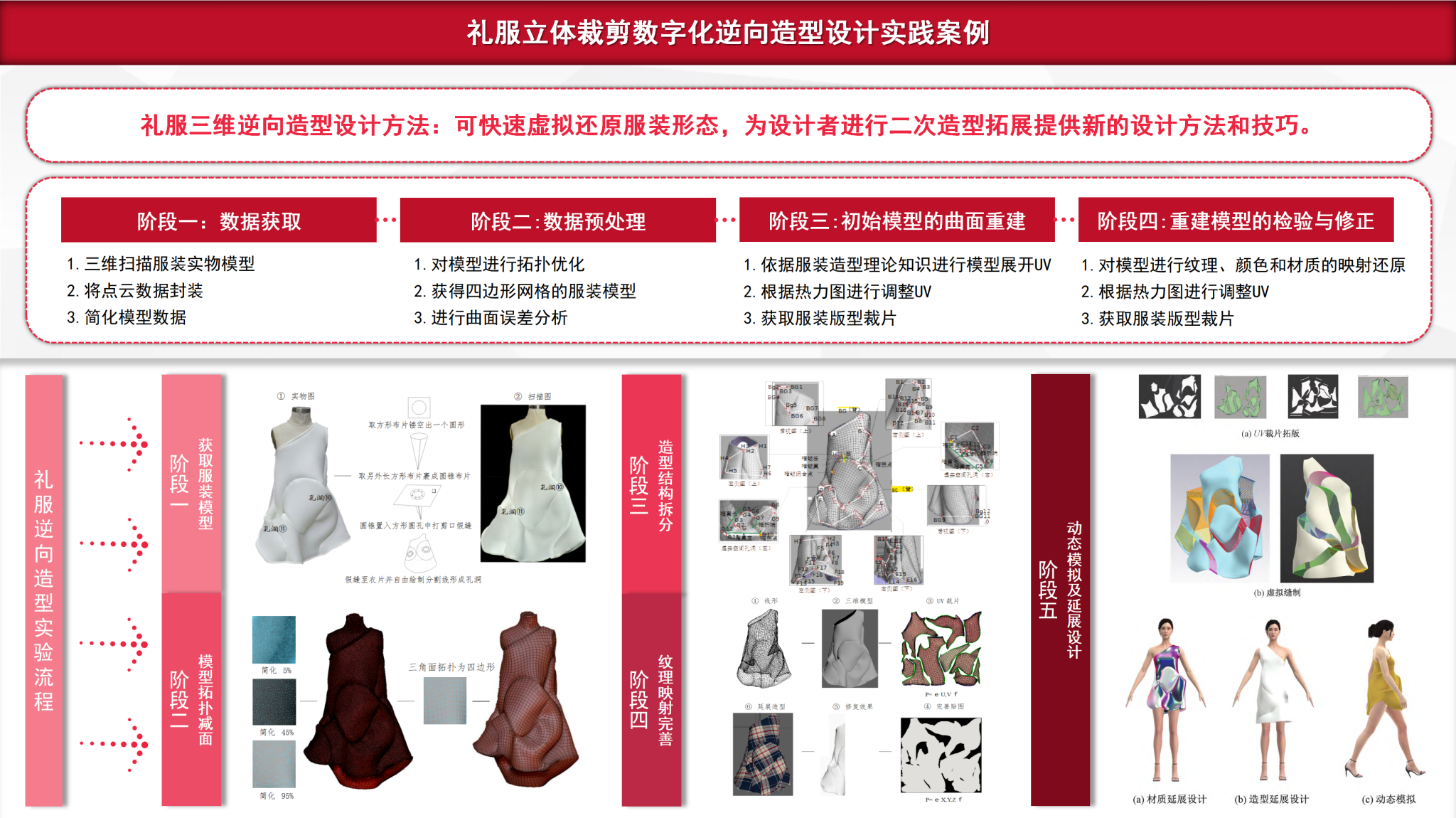 中国式现代化已踏上新征途,科技赋能与产业革命的强劲动能,正加速制造业数字化转型,也推动新质生产力为高质量发展注入活力。2013年,我在曼彻斯特大学3D Fashion Design and Manufacturing Technology 方向访学归国后,深刻领会到 “中国制造” 向 “中国创造” 转变的重要性与紧迫性。通过推进科研实践、申请校内专项实验设备,我带领团队建立了 “服装数字化” 实验室,于2013年开设数字化服装技术课程,2017年增设功能服设计课程——以 “三维扫描—点云处理—曲面重构” 技术路径为突破口,将数字技术作为课程与专业创新的新平台。