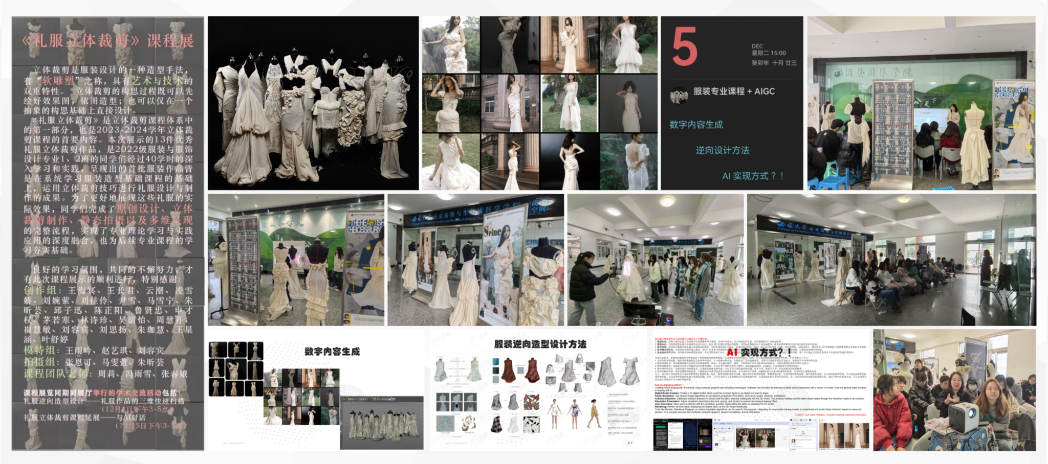 多年来,我始终以 “守牢基础技能、创新课程体系” 为导向,通过真实设计项目驱动、国际名师共课交流、鼓励学生参与专业竞赛、跟踪毕业生反馈优化教学等方式,持续强化学生的基础创新能力与成果转化能力,推动立体裁剪课程从 “单纯技艺传授” 升级为 “综合能力建构”,切实满足服装产业转型升级对高素质专业人才的新要求。