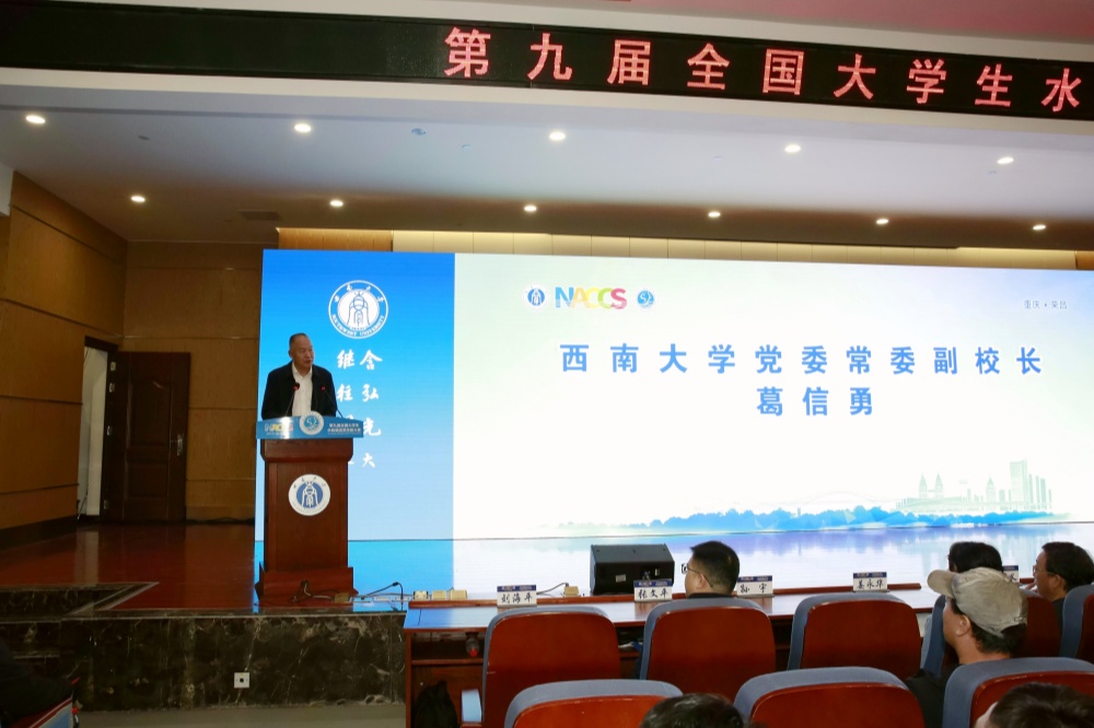 教育部高等学校水产类教学指导委员会委员、华中农业大学副校长李大鹏,学校副校长葛信勇,教育部高等学校国家级实验教学示范中心联席会相关学科组秘书长李滨,全国新农科水产教育联盟代表赵芬芳等嘉宾出席大赛开幕式并致辞。