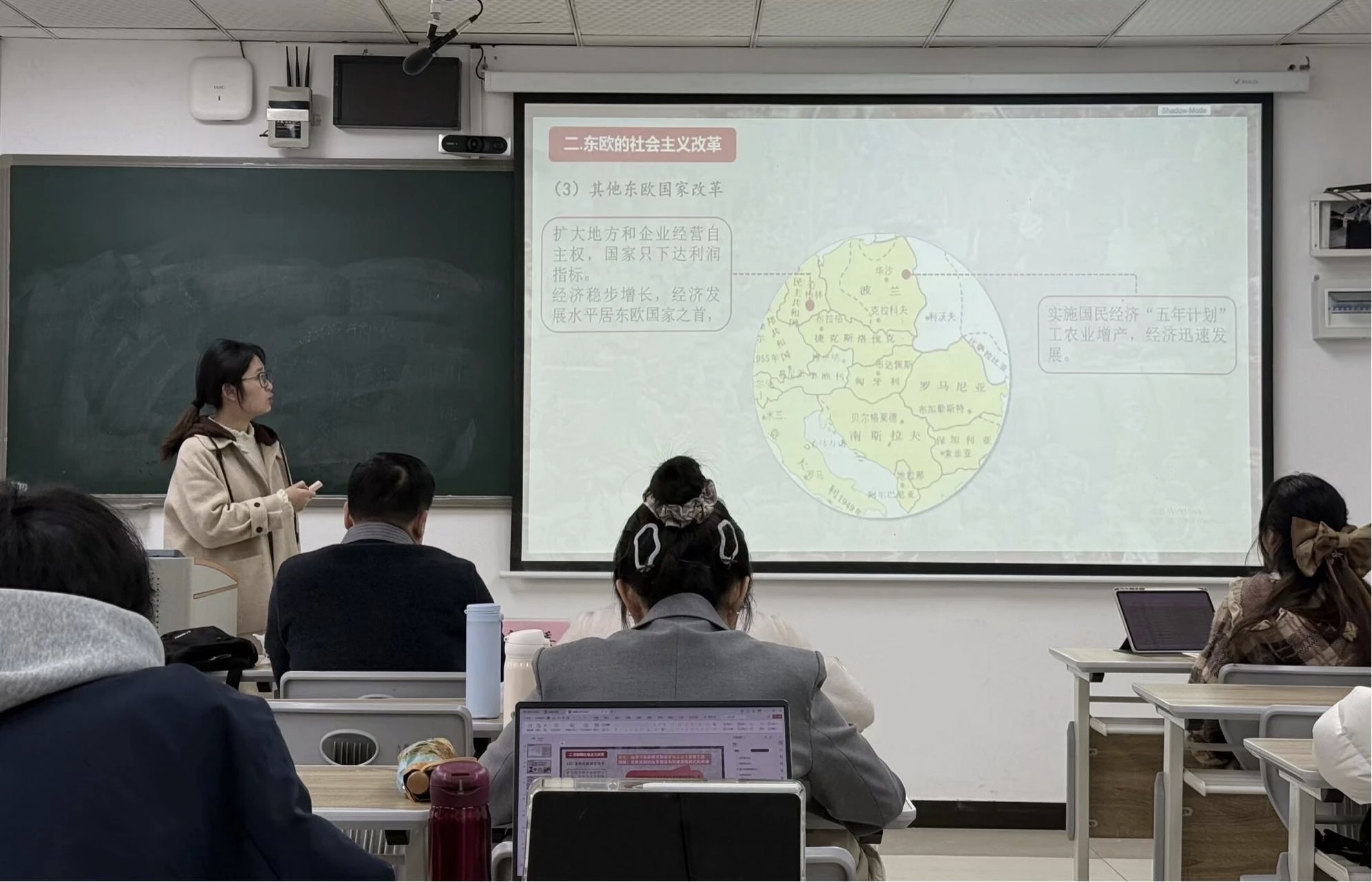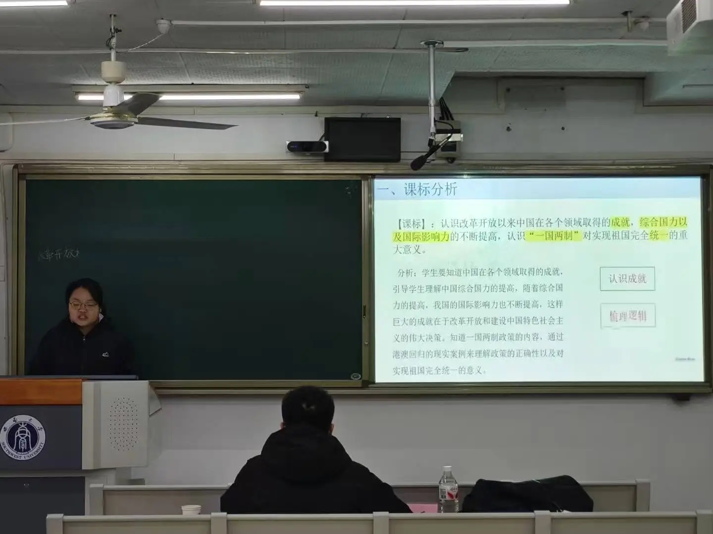 12月14日上午,说课讲课在第九教学楼分成16组同时进行。每位学生自选部编高中历史教材中的一个子目,依次进行5分钟的说课和12分钟的讲课展示。学院专业教师担任评委,进行现场点评指导并给出评分。既充分肯定了同学们的课堂设计创意与应变能力,也针对普遍存在的节奏把握、内容准确性、互动设计等共性问题提出改进建议,为师范生的后续成长指明了方向。