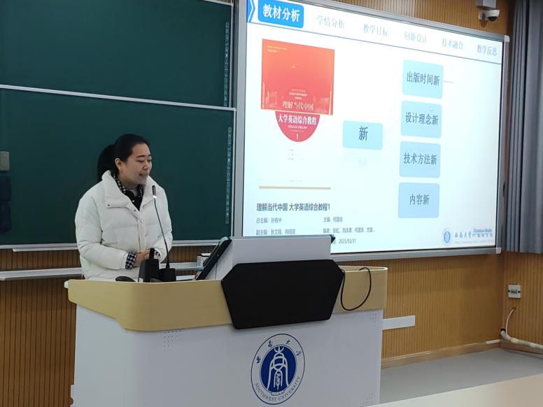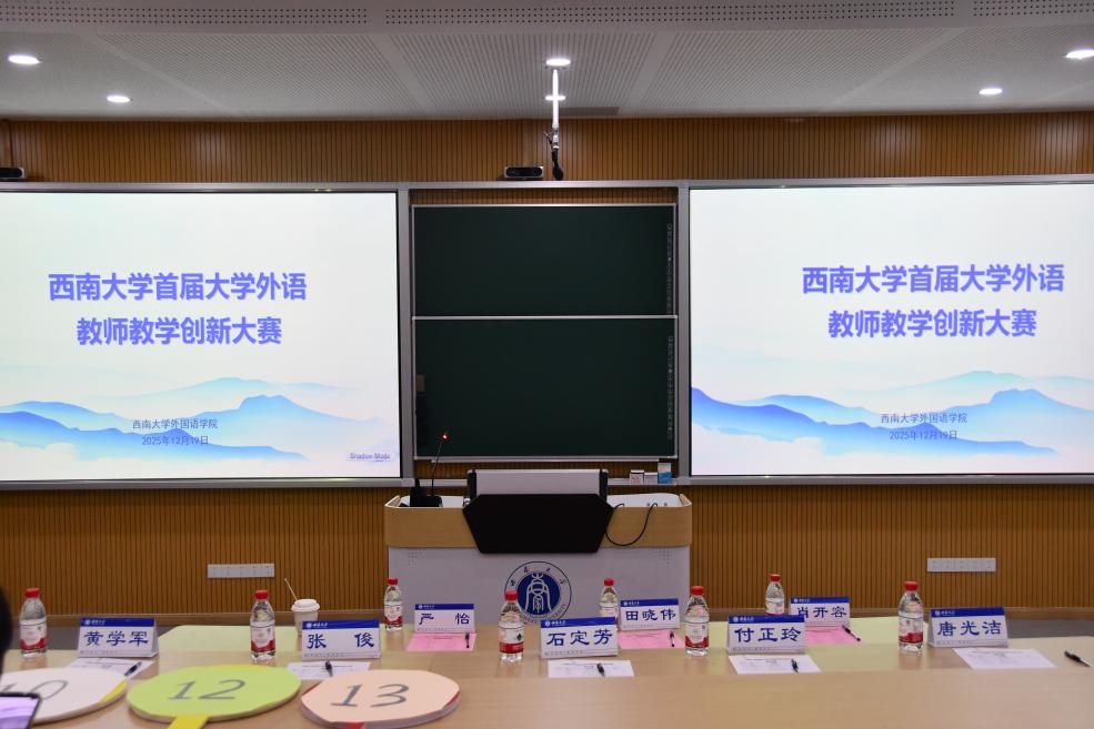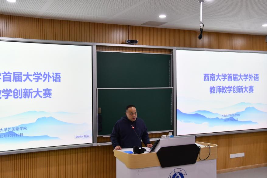 2025年12月19日,bw必威西汉姆联官网外国语学院成功举办首届大学外语教师教学创新大赛。本次大赛以“技术赋能、思政融入、模式创新”为主题,旨在搭建大学外语教学经验交流平台,促进教学模式创新,助力教师教学能力与育人水平双向提升。来自各教研室的八位教师进行了一场融合前沿教育理念与生动教学实践的专业教学展示。